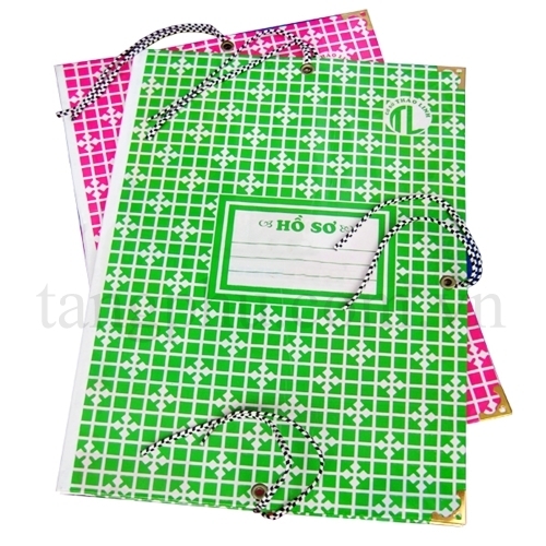 Đặc điểm: là sản phẩm với nguyên liệu làm bằng bìa giấy cứng, độ dày gáy khoảng 10F, có 3 dây nằm ở 3 cạnh bìa chắc chắn giúp lưu trữ hồ sơ với số lượng lớn.