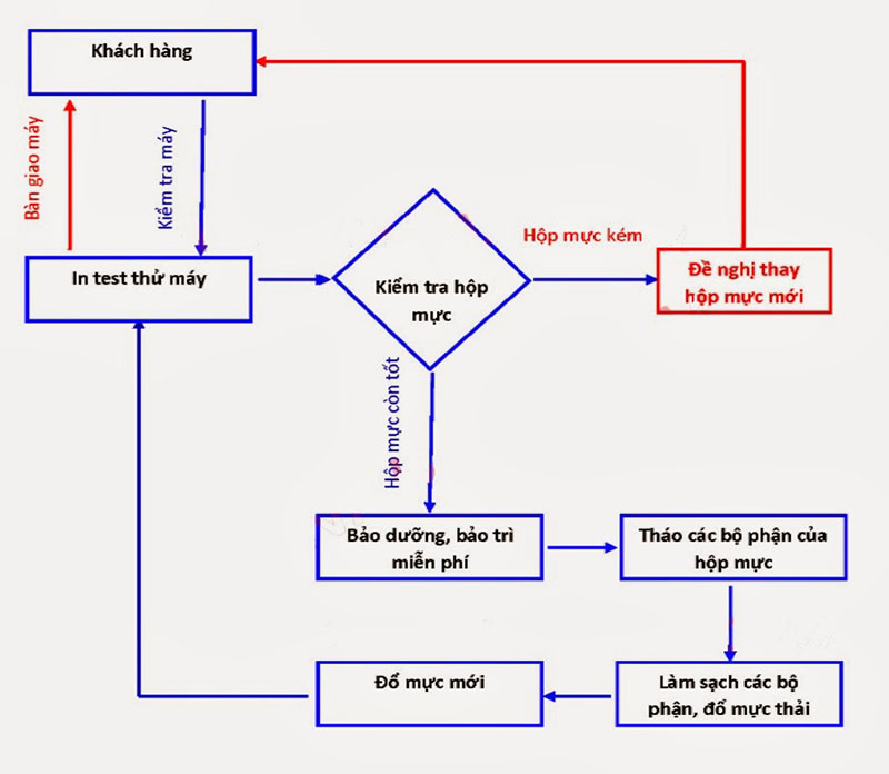 Quy trình của dịch vụ đổ mực máy in sam sung tại nhà